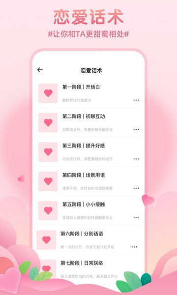【恋爱话术】恋爱话术汇集了情侣相处多个阶段的交流方式,能够帮助你促进和TA的更好交流,拥有更甜蜜的相处!