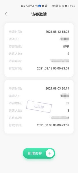 用户可以在这里进行访客邀请,登记来访的相关信息