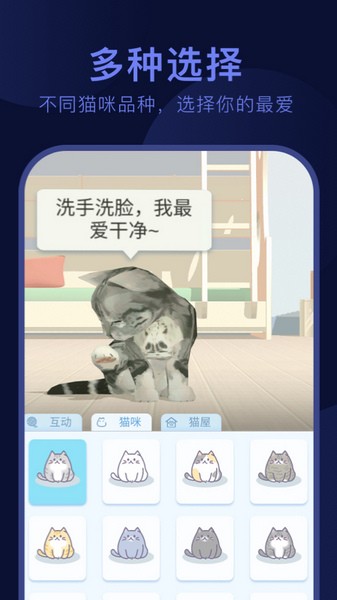 1、挑选一只喜爱的喵星人伴你入睡,饲养猫咪收获成长。