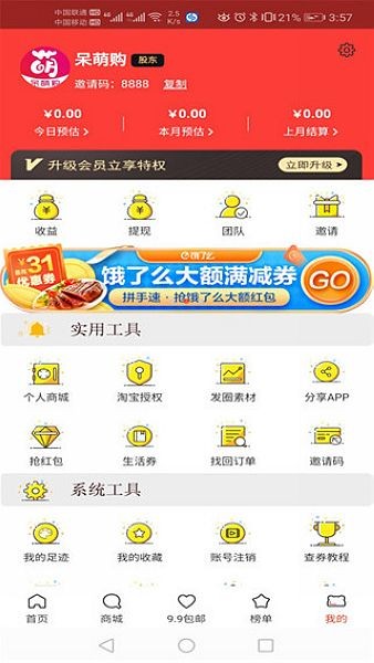 3、每日零元购免单、邀请好友奖励等各种等你来领取!