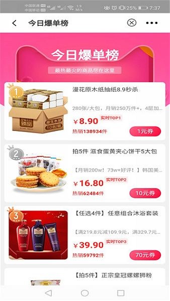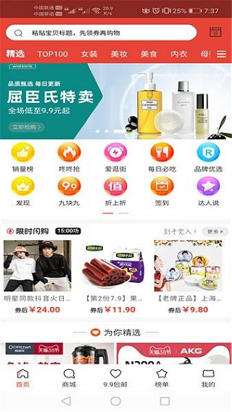 1、九块九包邮,三十元封顶,每日精选,高佣榜单,等等活动专区,汇聚精选好货!
