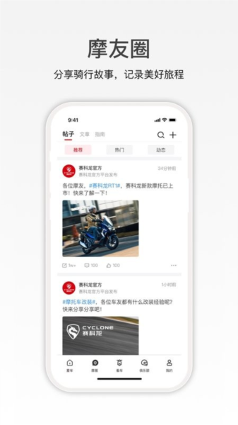 赛科龙APP是一款专为赛科龙摩托车设计的智能应用,主要功能包括远程控制车辆、查看骑行数据和安全监控等。它还有俱乐部、文章分享、骑行指南等功能,让摩旅爱好者能更好地享受骑行乐趣。我觉得这个App挺方便的,特别是车辆远程操控和安全监控这些功能,对新手来说特别有用。希望以后能增加更多互动功能,比如更多社交活动或者更详细的骑行路线推荐。