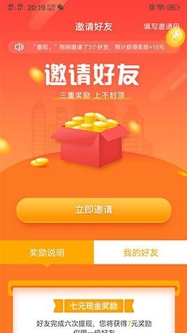 3、邀请好友:邀请一位有效好友能获得10%分成+1.3元现金奖励。
