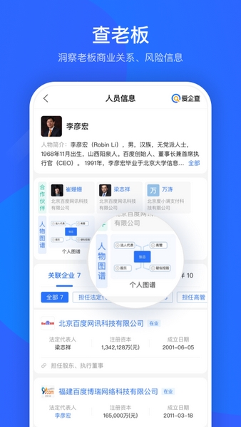 3、查老板,按地域、行业定位,快速查询企业高管、明星老板