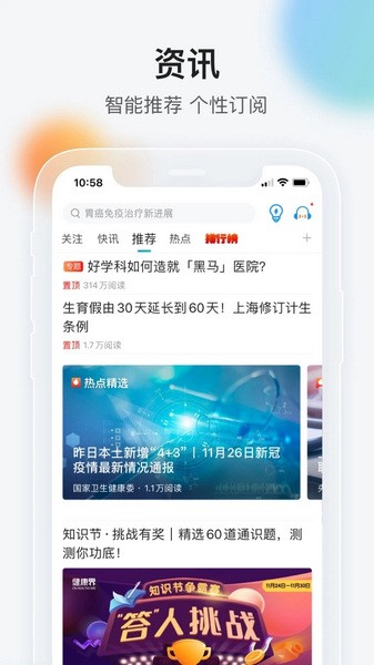 健康界APP是一个专注于医学健康的平台,用户可以在这里轻松搜索到所需的医学知识。界面设计简洁清爽,提供独家资讯和专业社区,海量大咖在线分享,满足你的学习需求。软件特色包括智能推荐新闻、多样化媒体形式、分享互动、智库精选以及专属徽章等。交互体验流畅,支持订阅功能,方便你只看感兴趣的内容。内容涵盖国内外医改、医管等领域资讯,还有丰富的课程、电子书和直播资源。新增的知识答题和PK玩法让学习更有趣,积分兑换系统激励用户参与平台活动。