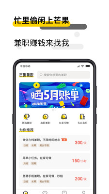 芒果兼职是一款手机兼职APP。这款软件比较适合大学生无聊的时候来做。因为只是兼职,赚的钱不多,但是把零碎的时间利用起来还能赚外快,还是挺不错的。在这里,你可以轻松找到适合自己的兼职,不管你是宝妈还是学生都可以来这里找兼职!利用平时空余的时间就能很轻松赚钱,完全不用担心时间问题,你有时间就能做!