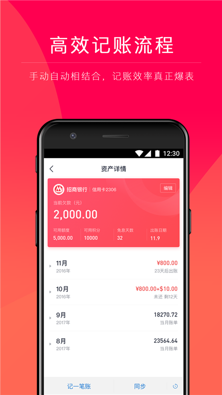 轻松同步信用卡、借记卡、支付宝账单,用过自动记账,就再也回不去手动记账了;