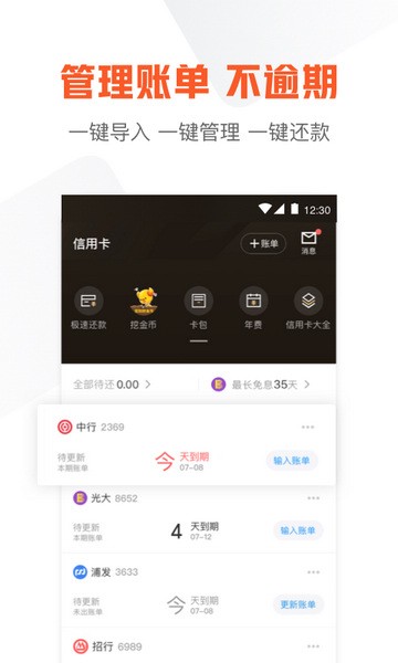 账目清晰、一键还款、多卡管理、到期提醒