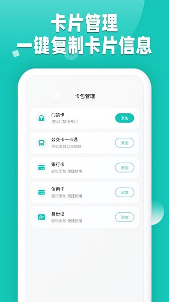 这款NFC读卡助手真的很方便!它可以把你的手机变成各种卡片,比如公交卡、门禁卡啥的。平时总是担心忘带钥匙或者卡,有了这个软件就不用担心了。操作也挺简单的,打开App,靠近卡片就能自动识别添加,然后就可以用手机刷开门啦。对了,还能管理很多张卡,想加哪张加哪张,特别方便。