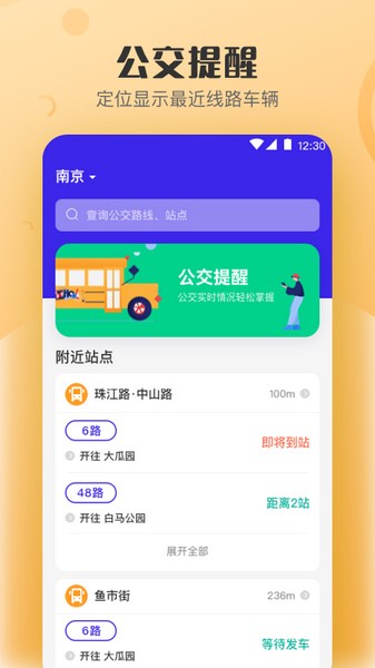 3、公交提醒功能,可以根据您的目的地给您推荐好的公交路线,NFC公交卡与出行需求的完美结合。