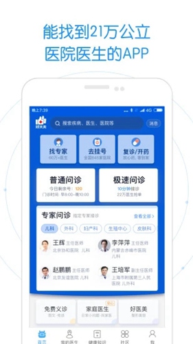 好大夫在线APP最新版是一款主打在线医疗咨询的软件,界面简洁清爽,功能丰富强大,覆盖全国各大医院,汇集众多医生专家在线问诊,并均经过身份认证,为你带来更专业的问诊服务,且科目繁多,囊括儿科、外科、妇产科、皮肤科等,满足不同用户的咨询需求,在医生开具处方后,还能直接在平台购药,为你配送到家!同时除线上服务外,平台还支持向医生预约线下看诊,各大医院随心挑选,轻松联系预约名医,让你更省心!