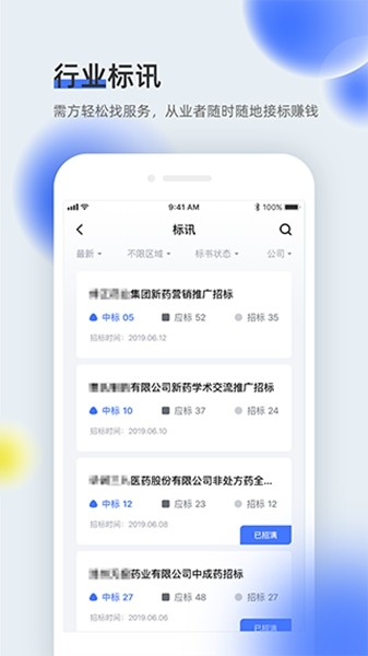2、医全通以行业标讯,需方轻松找服务,从业者随时随地接标赚钱