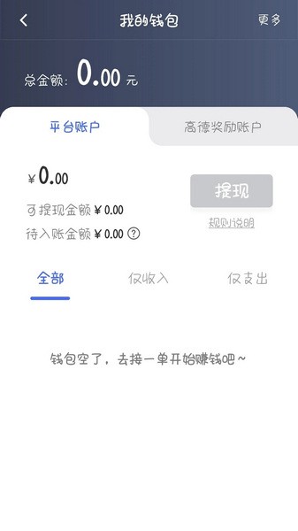 用户在完成接单后可以随时查看接单收入并在线提现,非常方便。
