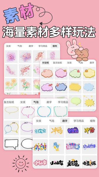 2、原创新颖可爱的手帐贴纸,精美的背景模板,画笔素材,免费持续更新;