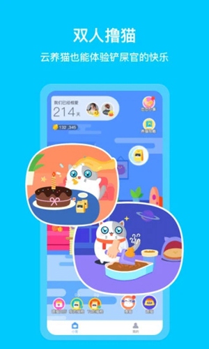 1、在这里可以再手机上面和自己的另一半互动,每天都可以有事做,两个人都可以同时的和小猫咪玩耍;