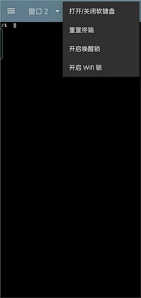 1、打开终端模拟器汉化版最新版本后的界面,在这里就可以方便的输入很多命令了。左上侧可以进行窗口的切换,点击右上的加号是新建窗口,错号是关闭当前窗口,三个点是更多选项。