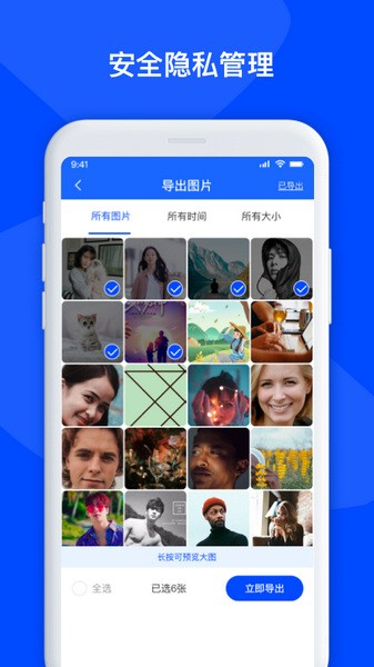 手机恢复及数据管理类工具软件。无需注册,致力于如何对手机进行高效管理。一键扫描快速扫描导出手机拍摄的图片,手机微信好友,微信聊天记录,微信消息恢复,查找手机图片,文件,视频。分类展示图片,文件,视频的大小类别,支持便捷导出或快速分享。让你无数据丢失的烦恼,缩减在数据海洋中查找时间。