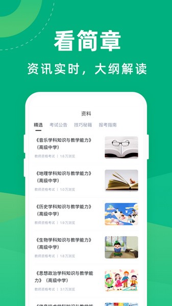 【考试资料】:实时提供教师资格证和教师招聘考试的招考信息、报考指南以及考试技巧,备考更轻松。