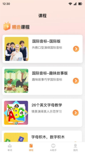 2、课程视频:提供丰富多样的英语教学视频,包括基础单词讲解、语法知识介绍以及实用对话练习等,帮助用户全面提升听说读写能力。