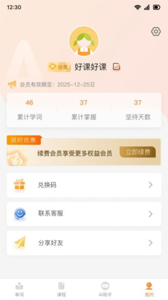 5、夜间模式:考虑到长时间使用手机可能对眼睛造成伤害,乐学同步单词特别设计了护眼模式,减少屏幕光线刺激。