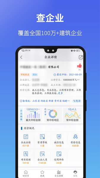 查企业:一键查询建筑企业多维数据,包括中标业绩、建造师在建、经营信息、荣誉、资质、备案、人员、工商信息、经营风险、司法风险等;