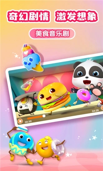 益智互动:跟着卡通动物哼唱英语儿歌,讲童话故事哄睡小猫咪,和熊猫奇奇一起制作美食等。