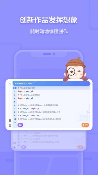 自由创造,孩子学习完成可自由创造程序运行,出现的错误会自动纠正孩子来更改。