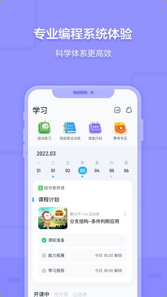 1、遵循中国孩子各年龄段发展特点,帮助孩子从程序角度构建世界,系统化学习编程知识,创造可广泛应用于生活场景的程序;