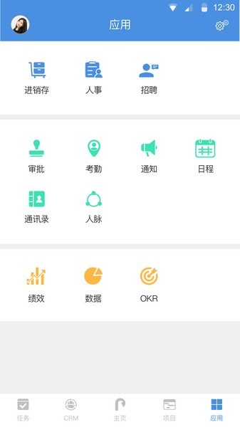 5、审批:多功能审批,请假、申购、出差等,何时何地都可快速处理,实现电子化办公。