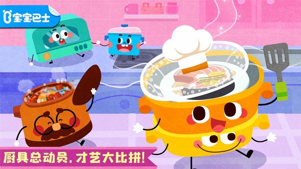 将厨具拟人化,通过帮助厨具们烹饪厨房美食,让宝宝学习做饭。