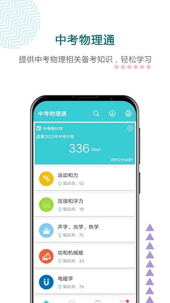 2、知识点:中考物理通包含中考物理科目下的所有中考知识点详解,具体的有运动和力、压强和浮力、声学、光学、热学、功和机械能、电磁学、物理实验等几个大的模块