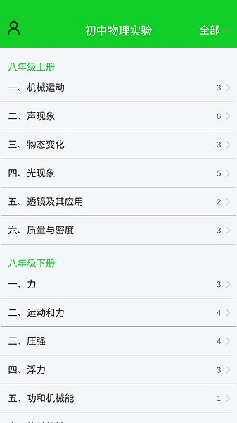 ①下载安装好初中物理实验app,我们打开应用来到主界面,可以直观的看到我们可以操作模拟的实验。
