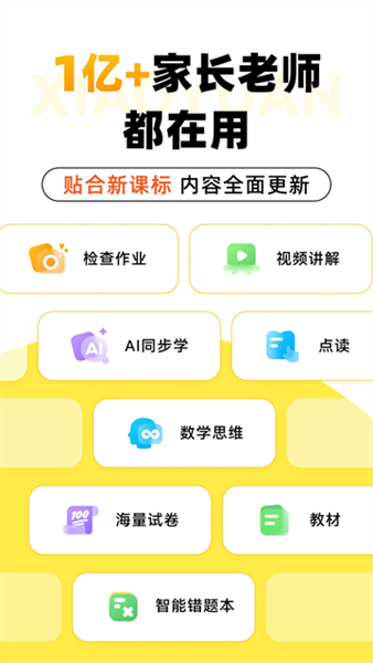 更多校内练习**课文点读、竖式计算、单位换算、听算练习、字词听写、语文作文、必备古诗、试卷下载、课文背诵、背单词、单词听写、口语练习、拍照翻译、作文批改等。
