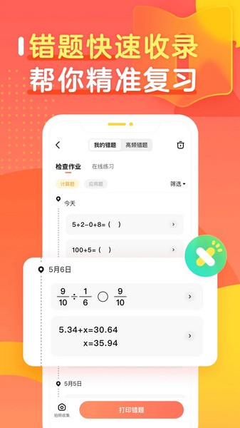 收集作业检查和在线练习过程中的错题,方便查漏补缺、针对性练习,彻底解决易错题。1秒即可发送到微信、QQ、邮箱,还能连接打印机哦。