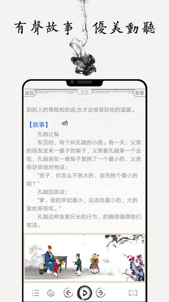 国学,诗词,古诗,文言文,成语图文并茂,水墨风插画匹配正文大意,方便学习与理解。