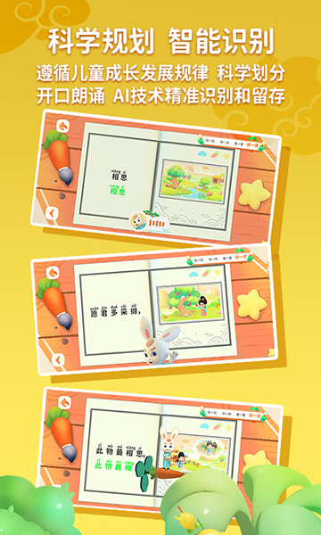 3、读一读环节:全新改版。释放家长时间无需陪同,孩子们可自由掌控,自主朗读与评测;