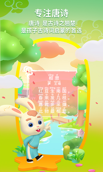 玄机兔点唐诗APP是一款专为3至8岁儿童设计的古诗词学习软件,旨在通过寓教于乐的方式让孩子们轻松接触并爱上中国古典诗词文化。这款软件集合了丰富的唐诗宋词资源,并通过趣味动画、音频和互动游戏等形式,帮助孩子在快乐中学习古诗词。它还提供诗歌解析、作者生平以及创作背景等详细内容,帮助孩子们更好地理解每一首诗的意境和意义。