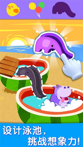 挖空西瓜,装上小伞和小躺椅,设计西瓜泳池。拼接蛋壳,安装门窗,打造蛋壳别墅