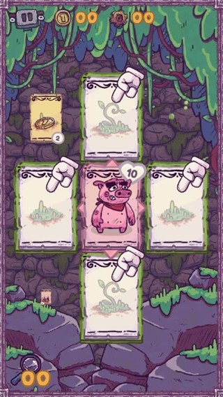2、卡通风格的怪物们,都是你强大的对手,翻牌直接击杀它们,还能获得海量的装备道具。