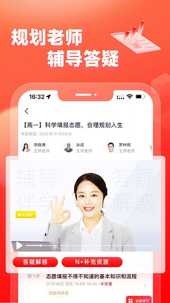 3、可以在这按照自己的年级选择课程,让你每天来这里学习,按照自己的复习计划来练习各种题库,也可以在这里进行志愿规划,还有各种各样的老师帮你规划。