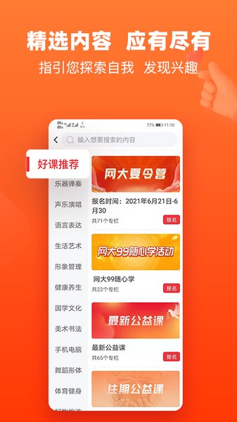 清晰明了的兴趣课程分类信息,让感兴趣的朋友都可以便捷报名,便捷挑选需求课程;
