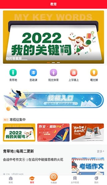 一、打开app,在教育界面中的青草地中点击投稿
