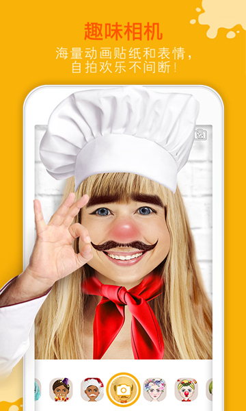 趣味相机,大量动画贴纸和表情,自拍欢乐不间断;