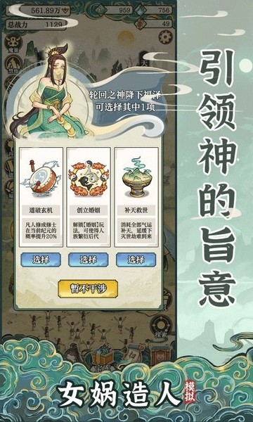 玩家需要探索三界,收集合适的材料,并以合适的配比来创造出适合当前时期的各种人类。这一过程充满了挑战和乐趣,玩家需要不断尝试和调整,才能找到最佳的造人方案。