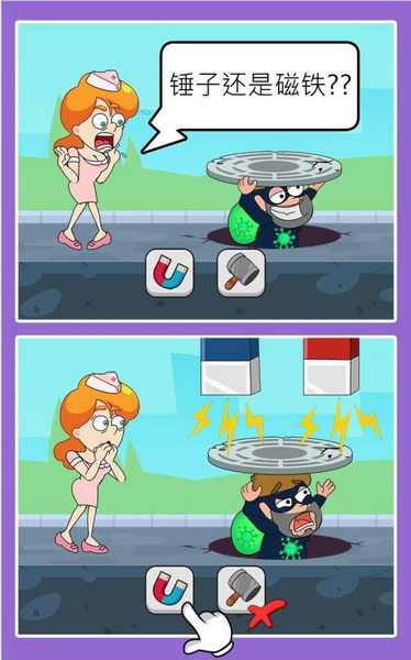 1、游戏中玩家需要仔细的观察场景中的状况来选择不同的道具,游戏的操作简单容易上手。