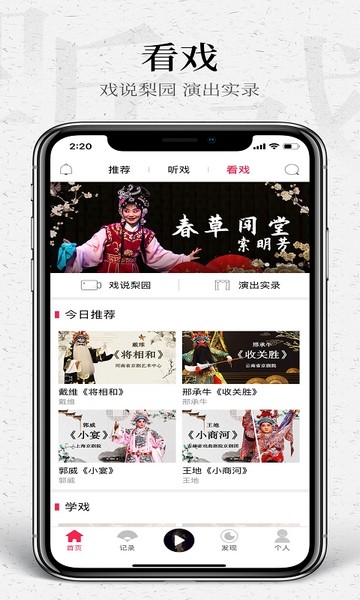 1、首页上是定时更换的推荐内容,包括著名选段、大师纪念、推荐专辑、推荐戏曲、推荐艺术家等。