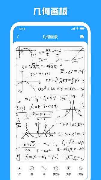 几何画板手机版是一款非常好用的几何绘图软件,当大家在学习理科学科的时候这个软件绝对是个非常实用的工具,在平台内大家可以十分轻松的将各种各样的图形构造出来,操作起来非常简单,只要大家将数据记录下来,系统就会将大家想要的完美图形做出来,并且能够自动保存下来,方便大家后续有需要可以继续使用,给大家带来更好的服务。