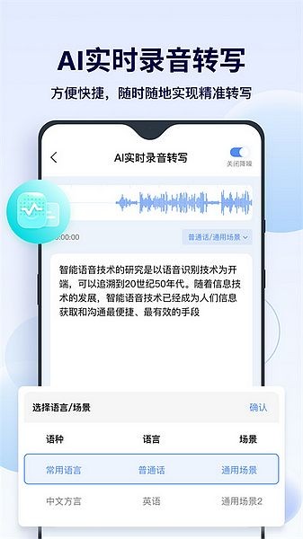 1、通过内置的智能ai系统,能实时的将您输入的语音内容识别为文字输出。