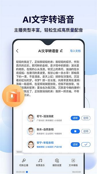 4、智能的识别系统,多种声音模式可选,一键将大段文字转为语音输出。