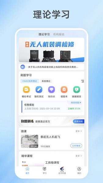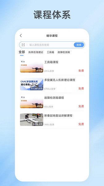 这里既有理论课程又有实操课程,用户既可以学习理论知识又能学习无人机操作。